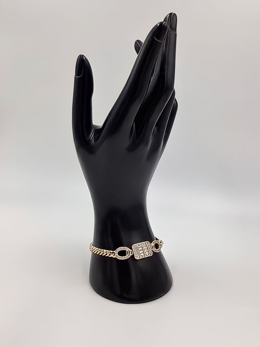Hoop and Pavé Square Stone Laminated Gold Bracelet