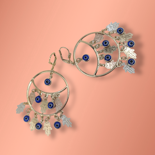 Evil Eye Dreamcatcher Hoop Earrings Laminated Gold